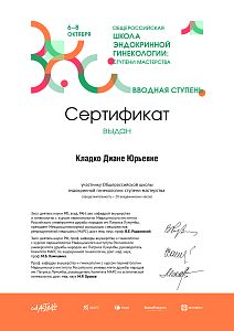 2025 г.– участник Общероссийской школы эндокринной гинекологии: ступени мастерства.